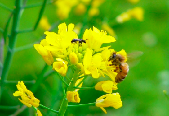 - Some bees dance while in the air to spread the word about a good source of nectar.