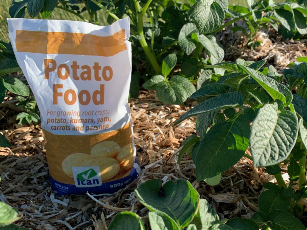 For potatoes grown in pots and smaller spaces, instead use a container-specific fertiliser to prevent burning from over-feeding. ‘Ican Slow Food‘ and ‘Yates Dynamic Lifter‘ are excellent choices.