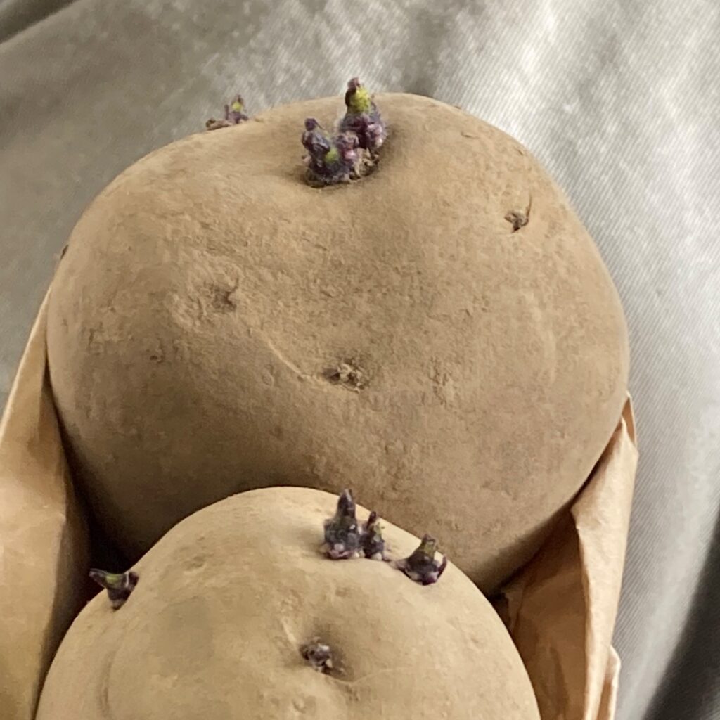 Formally known as chitting; this is the process of encouraging your potato to produce shoots prior to planting. Chitting your potatoes gives them a small head start. Ensuring your tubers are actively growing before they hit the cold, moist, spring ground can prevent them from rotting. This is also especially helpful for early crop potatoes as it can lead to an earlier harvest.