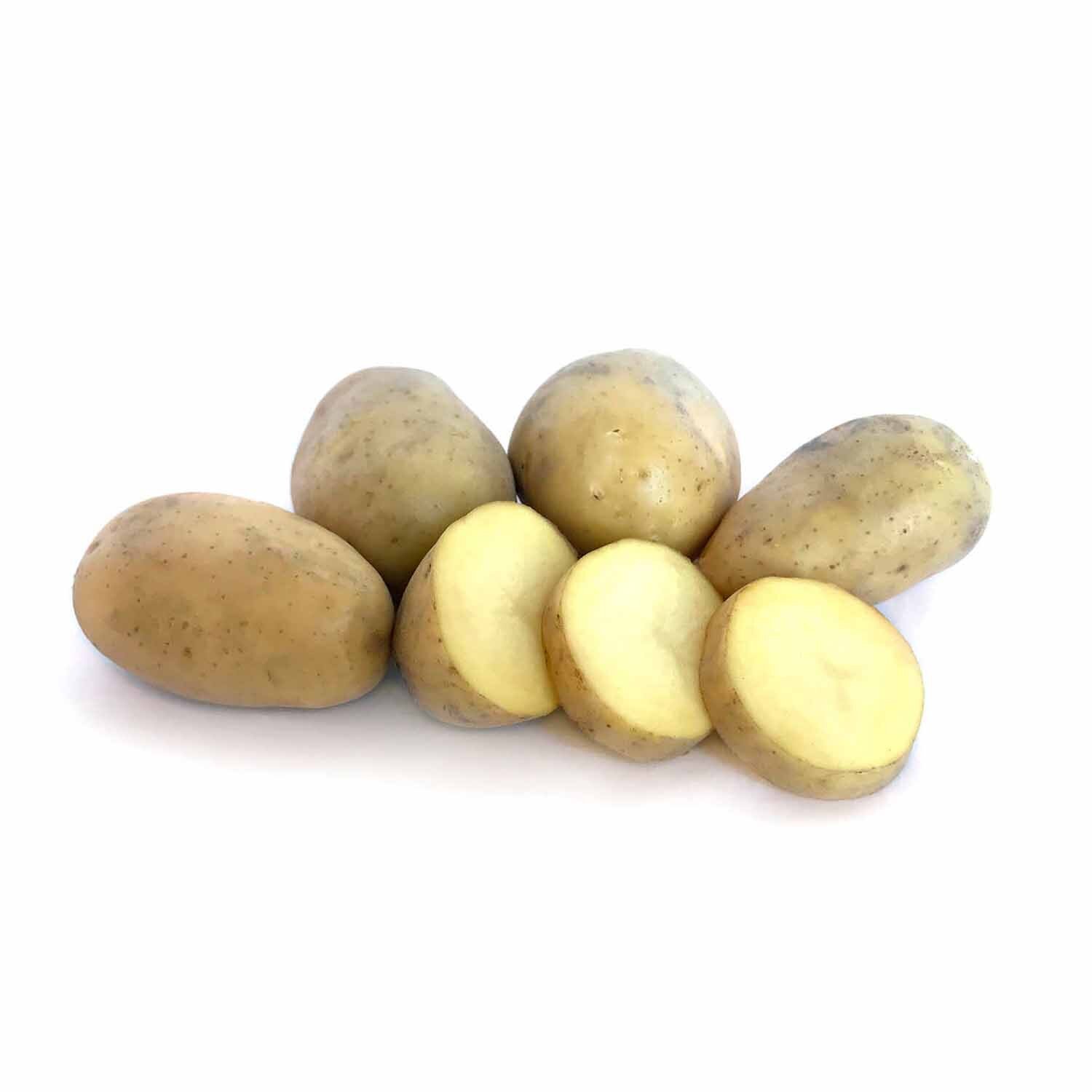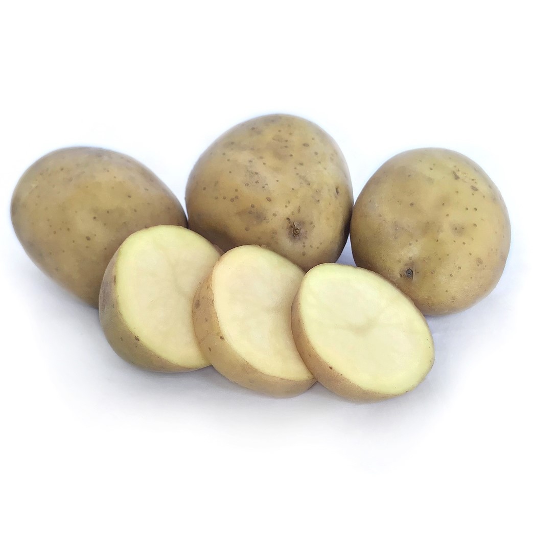 Swift: Round potato with white skin and waxy, cream flesh. High yielding variety. Ideal for boiling, salads, casseroles & soups.