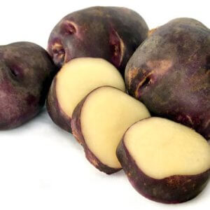Purple Passion: Features unusual purple skin with a cream flesh. A good all-purpose potato, beautiful in salads, roasts, or as chips.