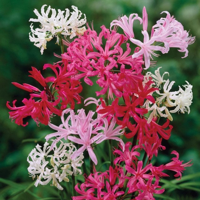The shoulder of the bulbs should be showing above the soil. Space them approximately 8-10cm apart in groups. To get long stems, they will need a little more shade. Nerines will naturalise if left undisturbed.