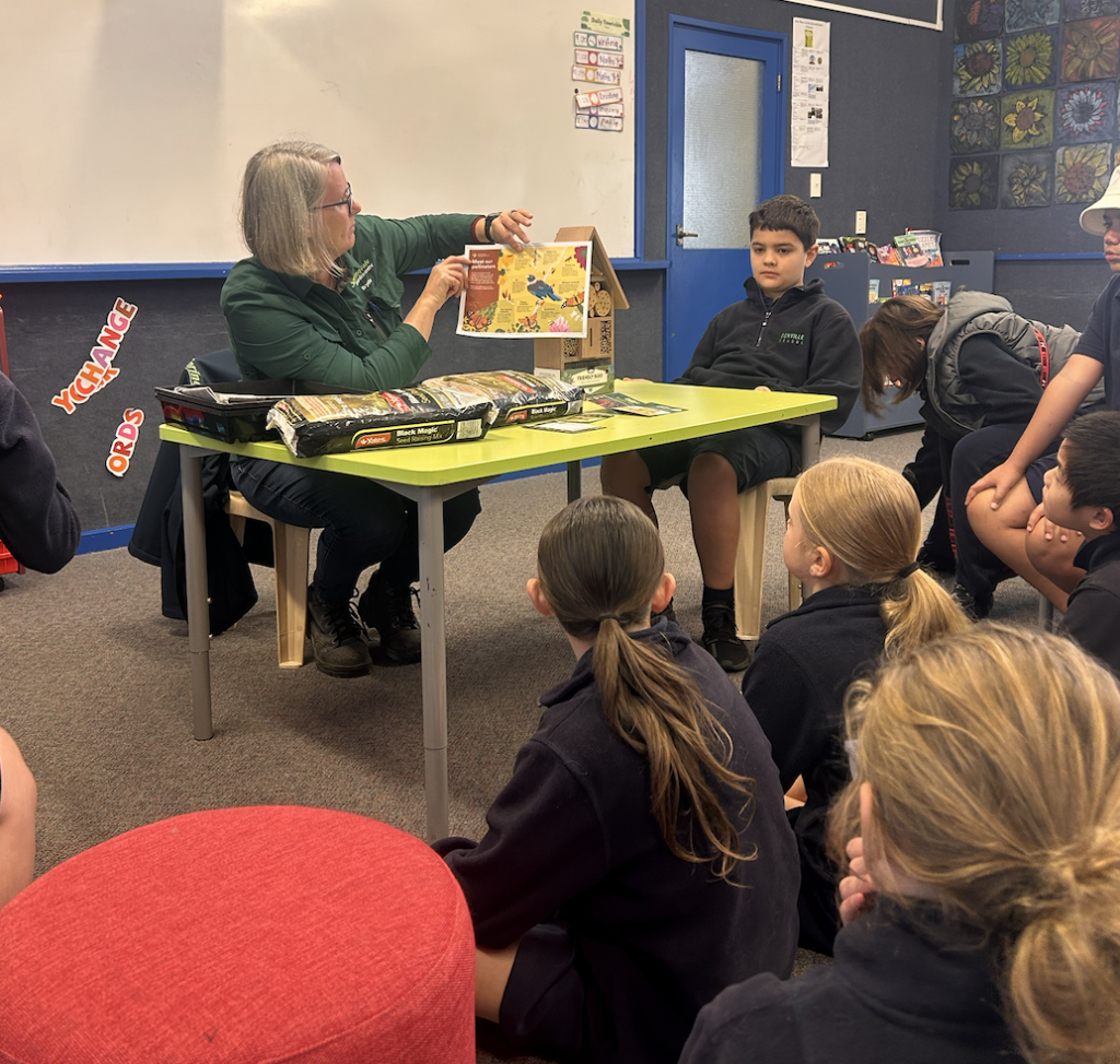 This term the students have been looking at birds and insects and the importance of them in our environment. In regards with the role they play in pollination and seed germination. We supplied them with an insect house and hope to develop ongoing work with the students to make their own. I took some seed-raising mix out and we planted some native seeds, guiding them on how to care and nurture them to grow. The kids were very fascinated to learn what the seeds looked like and how they grew. – Brydie, SGC Partnership Coordinator